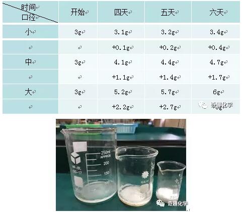 实验现象:口径大的烧杯几乎全部溶解,口径中的大量溶解,口径小的部分溶解。